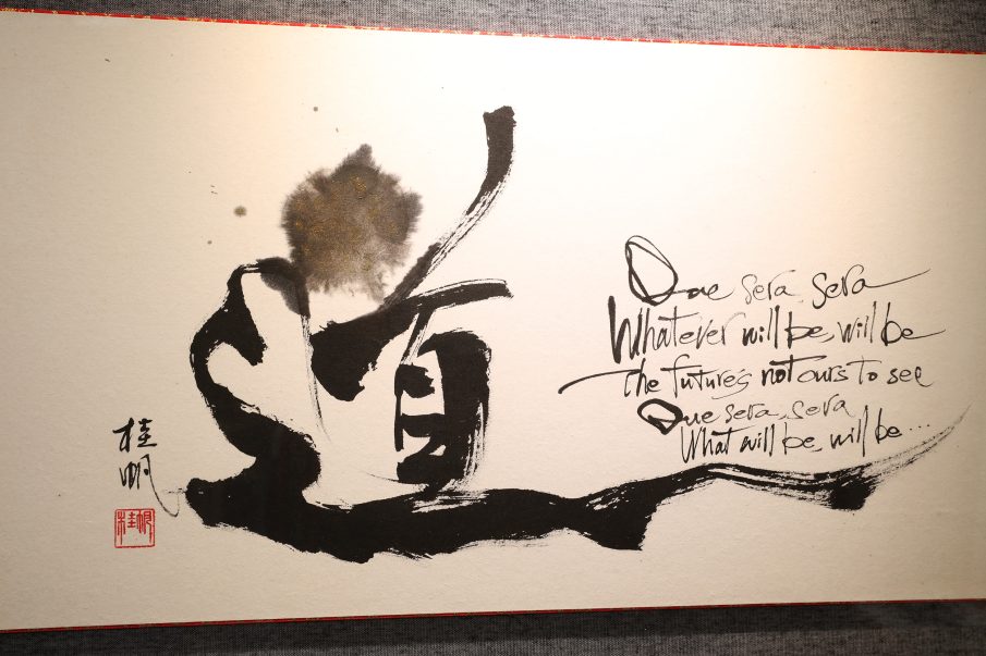 改めて、展示中の作品を紹介します。古代文字といわれる「龍体文字」を用い、