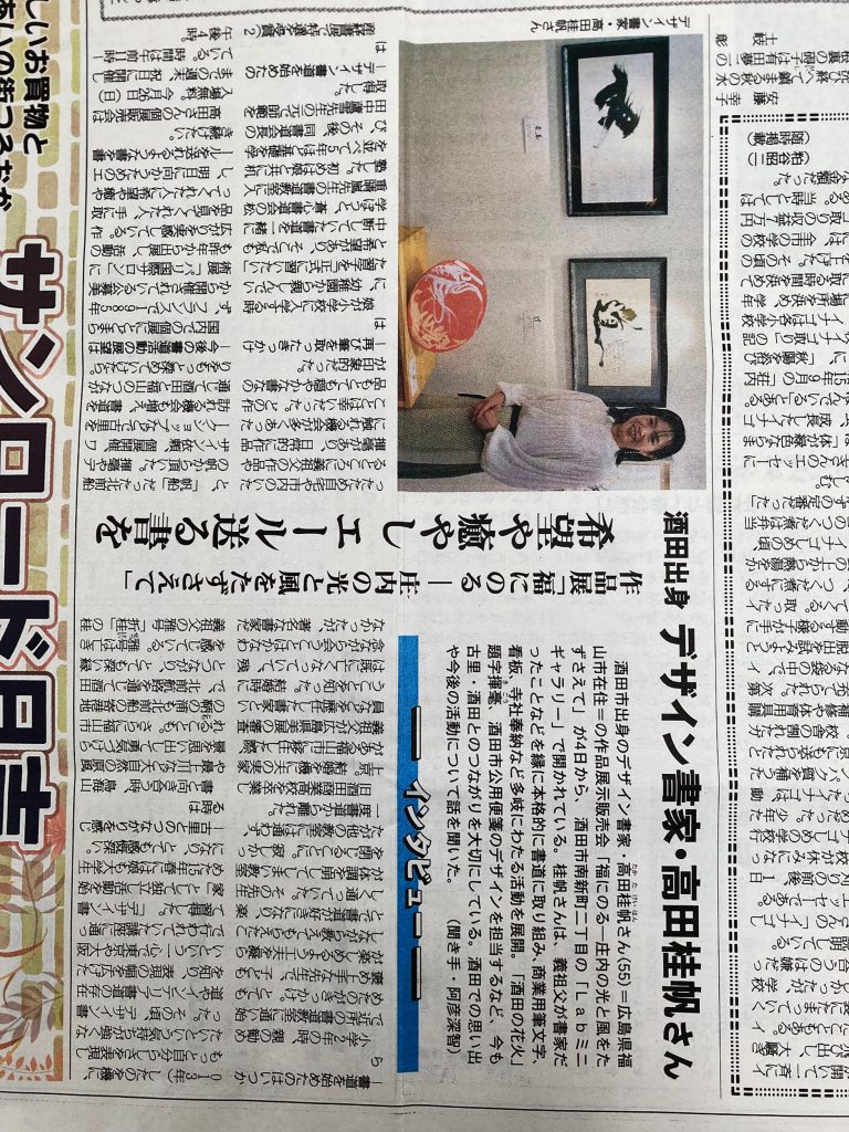 書家・高田桂帆「福にのる~庄内の光と風をたずさえて~」展も、残すところ3日となりました。