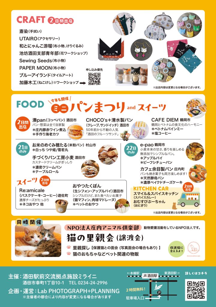 ネコ用のおやつもあります。酒田はもちろん、村山市や鶴岡市、庄内町の人気店が集う「ミニパンまつり」も同時開催。